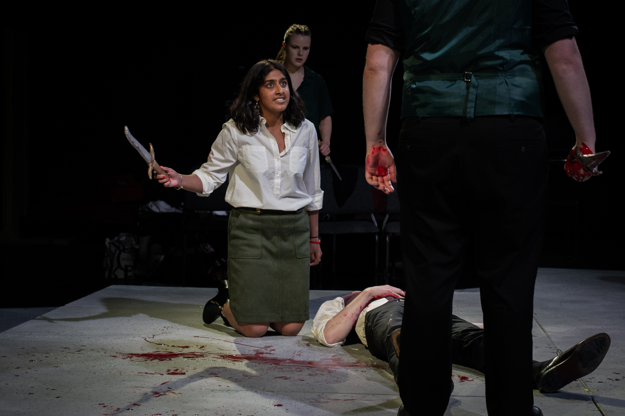 I think that this play isn’t about Ancient Rome, nor is it about Henry Kissinger, our current president, or any other super-specific modern allegory. To me, it’s about a much simpler truth – how war and political violence are almost always brought about by people with money, status, and institutional power. Meanwhile, war’s worst consequences – death, devastation, the complete upheaval of everything you know and love – tend to fall on the powerless, who are then generally left to pick up the pieces themselves. So when that happens, are we doomed to maintain divisions and restart that same cycle of violence? Or, instead, can we turn to each other, break away from the warmongers that often govern us, and go towards something new?