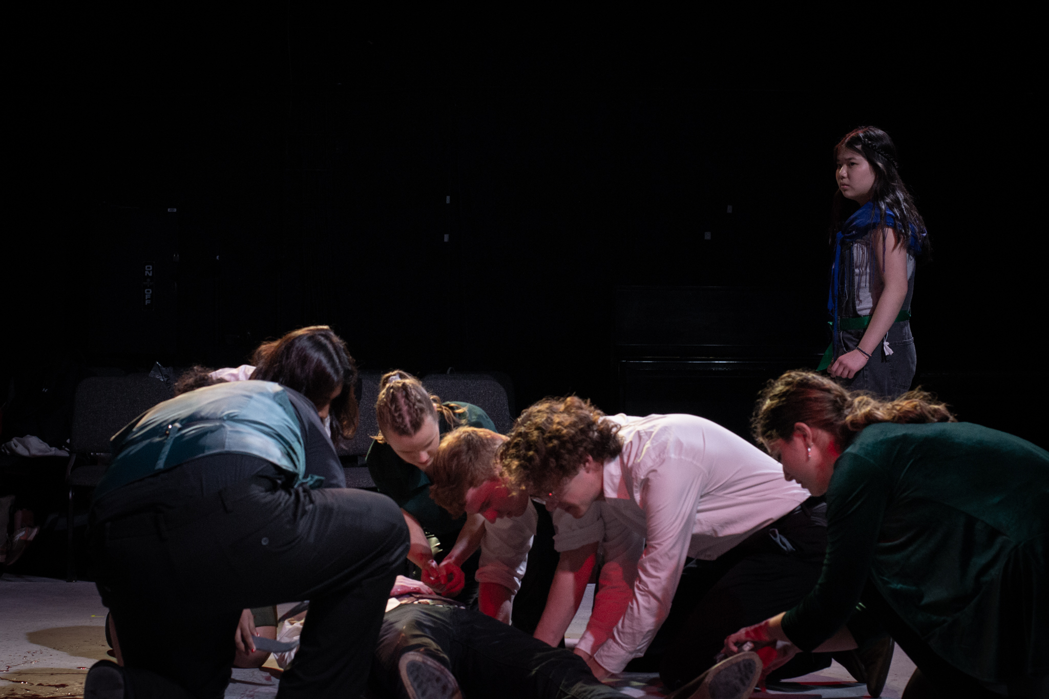 This show isn’t about Henry Kissinger, but while working with this wonderful group of artists, I’ve been thinking a lot about how we choose to remember the perpetrators of war versus the victims. Something I love about this play is that despite how violently opposed its different factions are to each other, at no point does Shakespeare explicitly frame any of them as the villains – or the heroes – of the story. At their core, every major player has the same goal: to lead Rome in the way that is best for its people. What matters is that their petty disagreements over how best to lead cause them to instead plunge their home into an all-out civil war, ushering in a wave of death and destruction that the ordinary people of Rome likely did not ask for or deserve. My goal in telling this story was not only to tell the stories of Caesar, Brutus, and Antony, but also to tell the stories of those ordinary people.